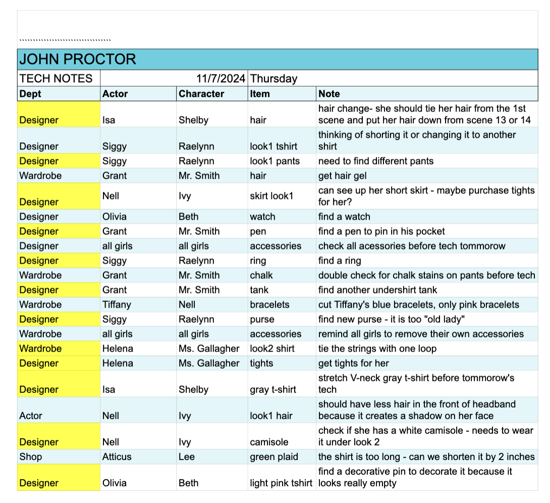 Making Piece Lists & Other Paperwork For Wardrobe Team
